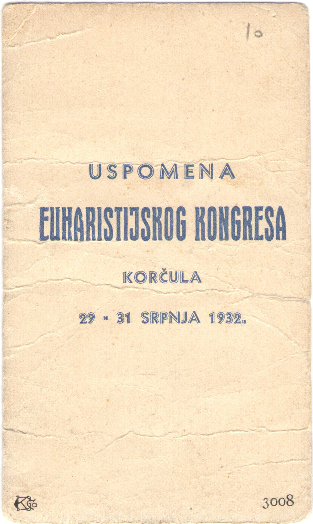 Naslov | Uspomena Euharistijskog kongresa | |