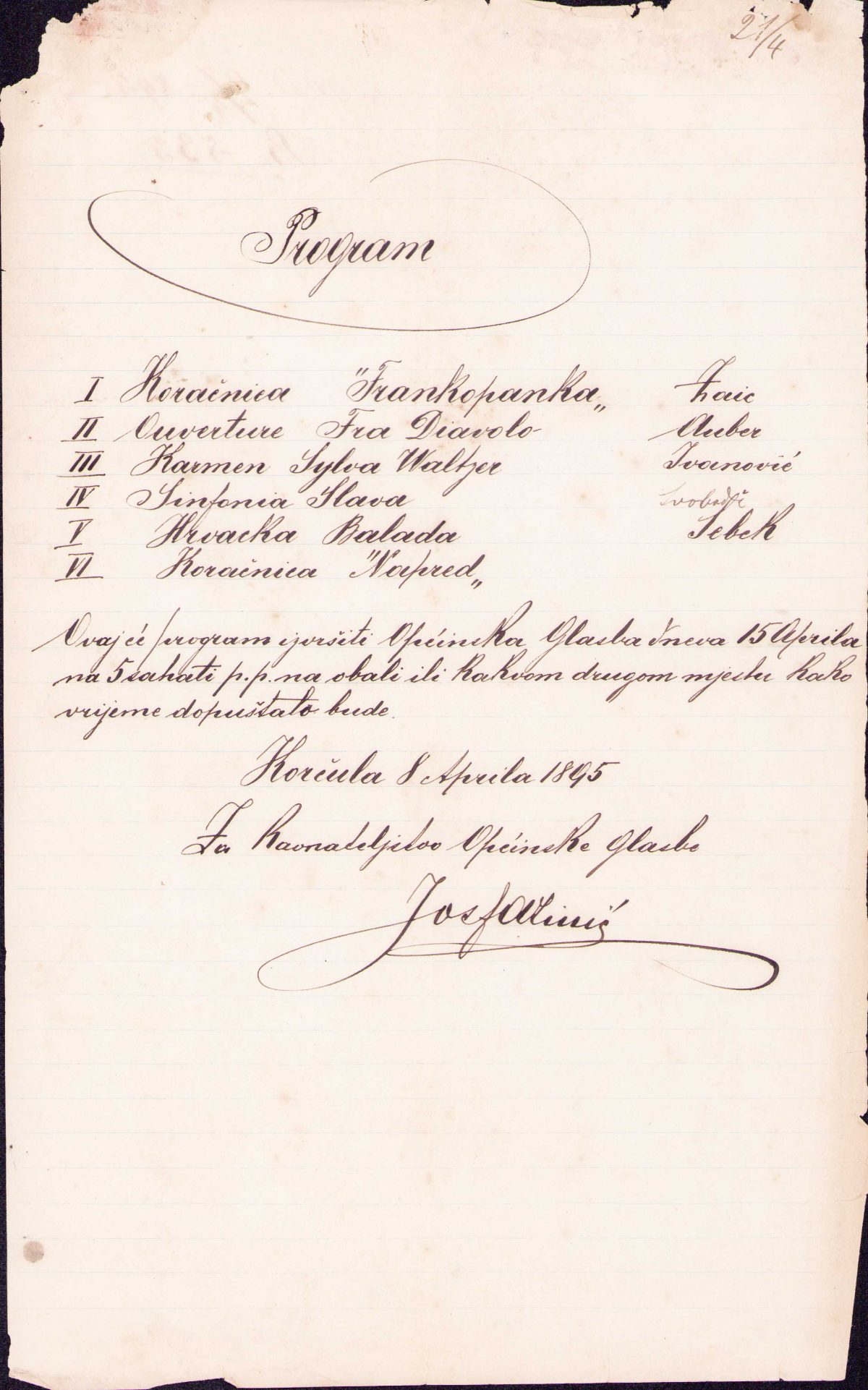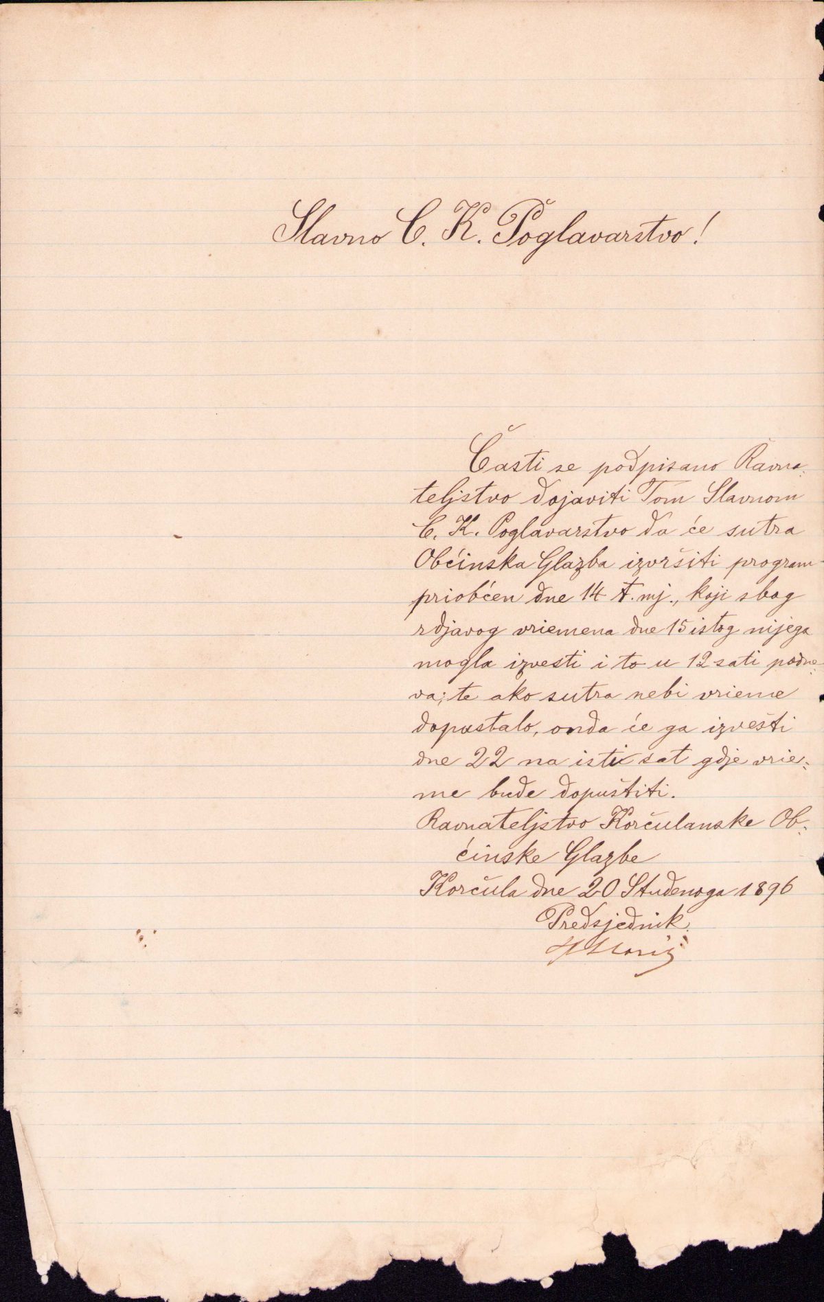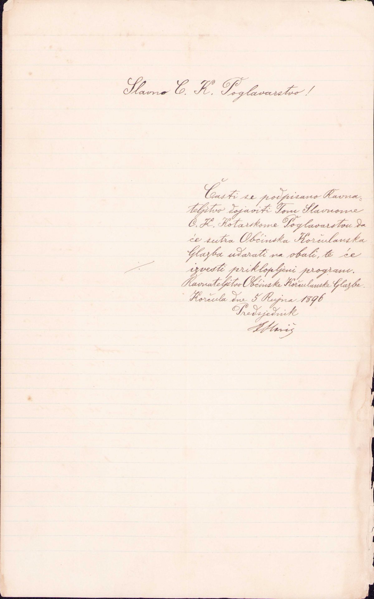 Prijava nastupa Korčulanske hrvatske općinske glazbe s programom pred stanom Antuna Fabrisaroko2022-11-10T10:32:21+00:00