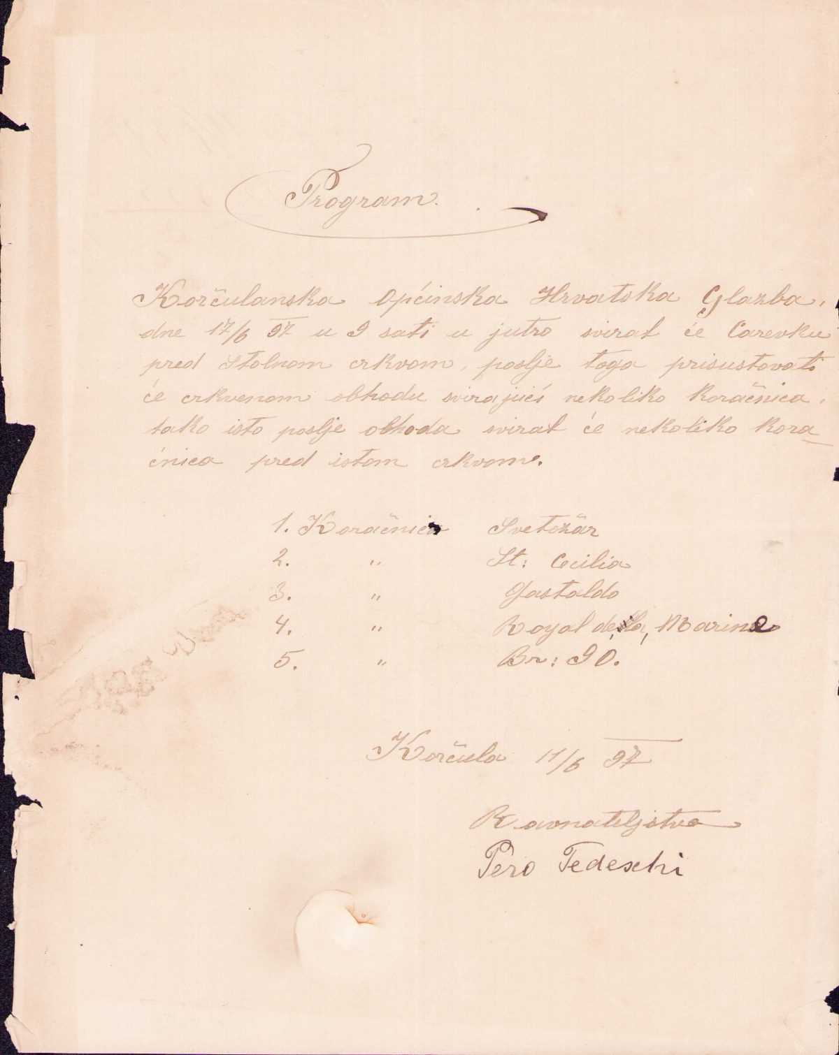 Prijava nastupa Korčulanske općinske hrvatske glazbe s programom pred Stolnom crkvom i u crkvenom ophoduroko2022-11-10T10:33:47+00:00